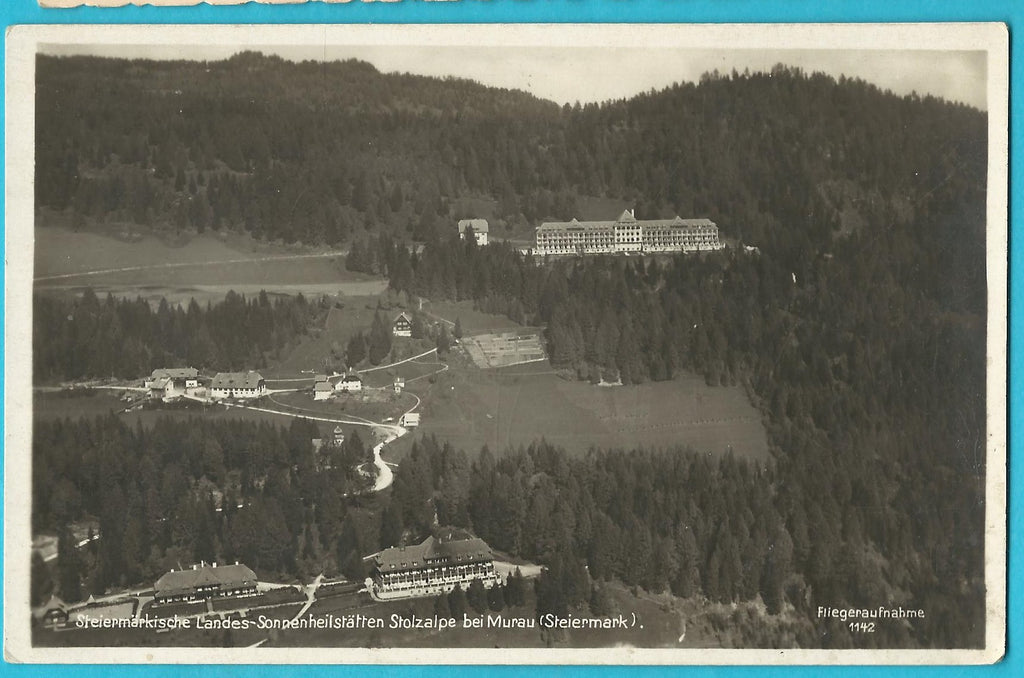 AK Steiermärkische Landes-Sonnenheilstätten Stolzalpe bei Murau. Gelaufen. Kleinformat. Verlag: Österr. Luftbildindustrie. Nummeriert: 1142. Zustand: gut.