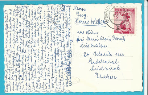 AK Steinhaus am Semmering (1959) Gelaufen. Kleinformat. Verlag: Ledermann. Nummeriert: 49319. Zustand: rechtes unteres Eck geknickt, Kugelschreibermarkierung über der linken Bildhälfte.