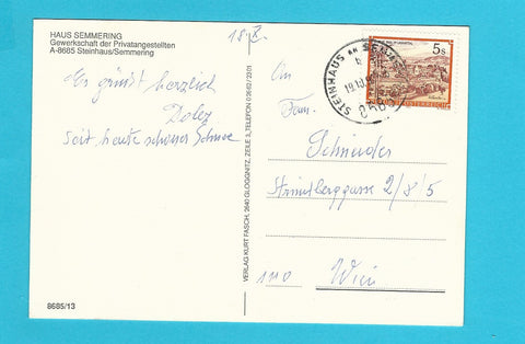 AK Steinhaus am Semmering. Haus Semmering. Gewerkschaft der Privatangestellten. Gelaufen. Großformat. Verlag: Fasch. Nummeriert: 8685/13. Zustand: gut.