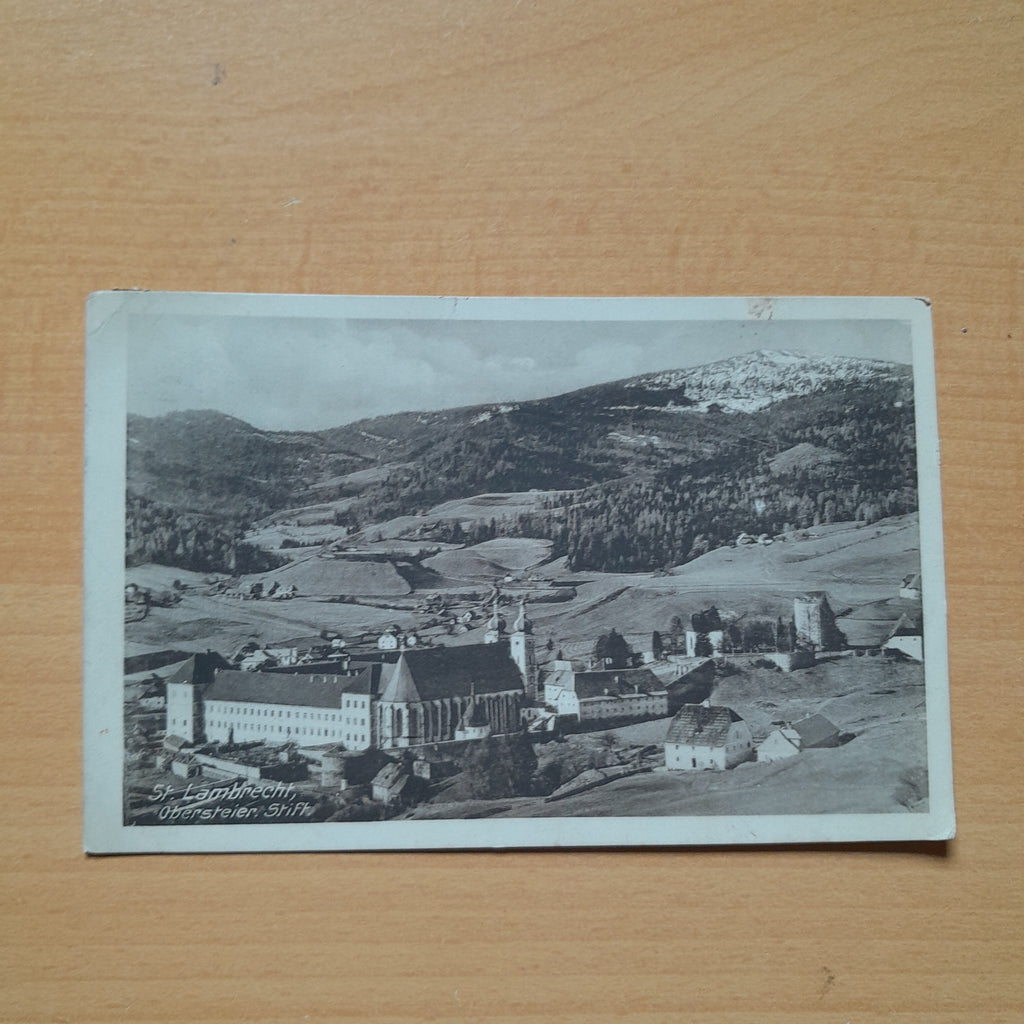 AK Stift St. Lambrecht. (1914) Gelaufen. Kleinformat. Verlag: Knollmüller. Nummeriert: 5433. Zustand: kleiner Einriss am oberen Rand, linkes oberes Eck geknickt.