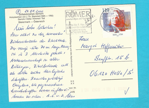 AK Stiftsbibliothek Admont. Gelaufen. Großformat. Verlag: KK XX. Nummeriert: 1478. Zustand: gut, rechtes unteres Eck angeknickt.