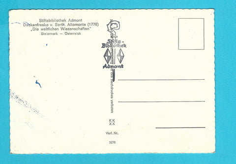 AK Stiftsbibliothek Admont. Deckenfresko v. Barth. Altomonte. Die weltlichen Wissenschaften. Ungelaufen. Großformat. Verlag: KK XX 5276. Zustand: leichte Läsuren.