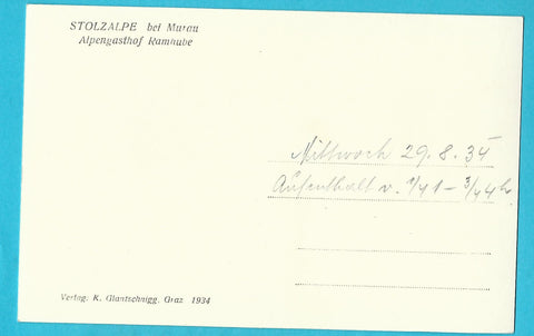 AK Stolzalpe bei Murau. Alpengasthof Rahmhube. (1934) Ungelaufen. Kleinformat. Verlag: Glantschnigg. Zustand: gut.