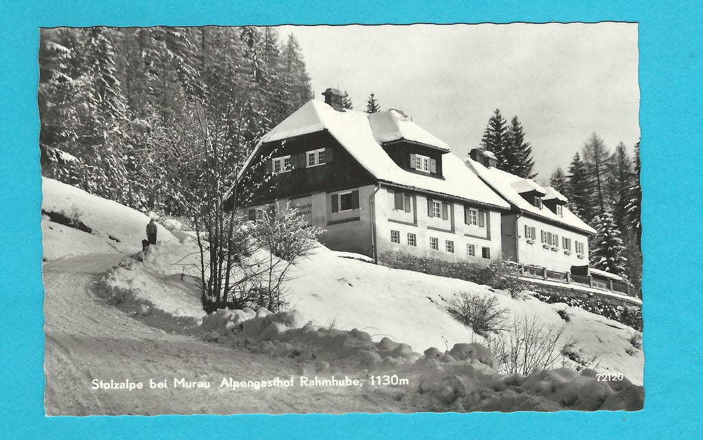 AK Stolzalpe bei Murau Alpengasthof Rahmhube. (1964) Gelaufen. Kleinformat. Verlag: Ledermann. Nummeriert: 72120. Zustand: gut.