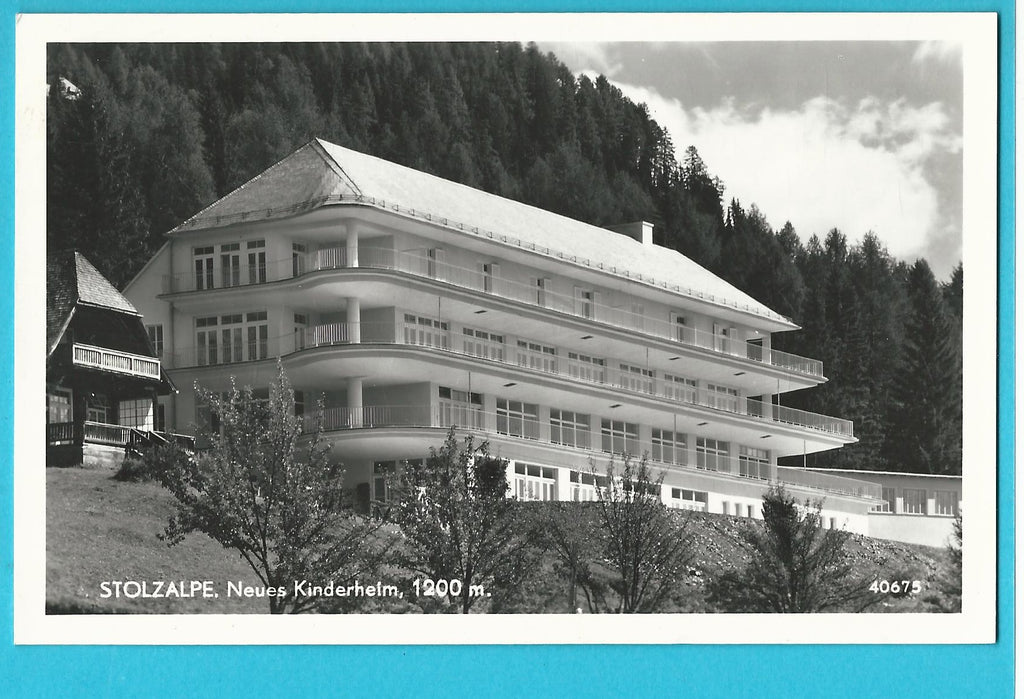 AK Stolzalpe Neues Kinderheim. Ungelaufen. Kleinformat. Verlag: Ledermann. Nummeriert: 40675. Zustand: gut, linkes oberes Eck geknickt.