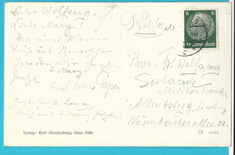 AK Straßengel-Judendorf. (1938) Gelaufen. Kleinformat. Verlag: Glantschnigg. Nummeriert: 664. Zustand: gut, wenig bestoßen.