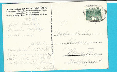 AK Stubenberghaus auf dem Schöckel. Gelaufen. Kleinformat. Verlag: Glantschnigg. 107-32. Zustand: gut.