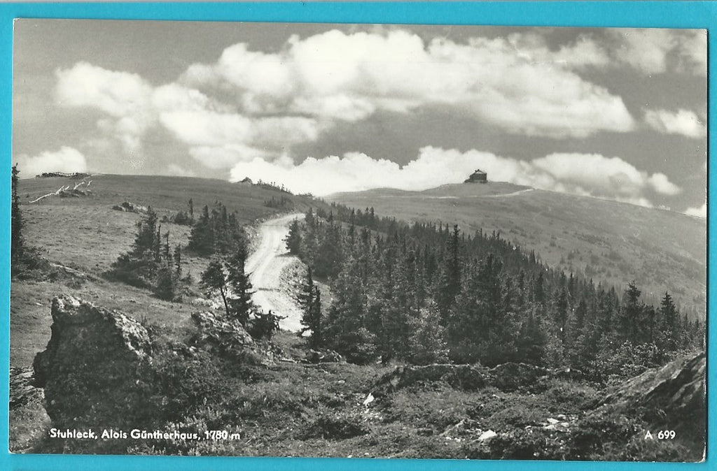 AK Stuhleck. Alois Güntherhaus. Gelaufen. Kleinformat. Verlag: Blaha. Nummeriert: A 699. Zustand: gut, rechtes oberes Eck angeknickt. Steinhaus am Semmering.