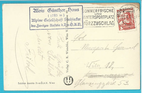 AK Stuhleck, Güntherhaus. Gelaufen. Kleinformat. Verlag: Wiatschka. Nummeriert: 1370. Zustand: leichte Läsuren.