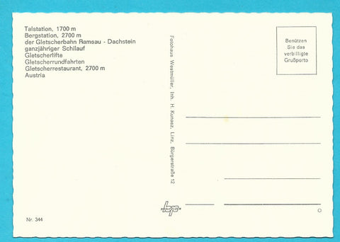 AK Talstation Bergstation Gletscherbahn Ramsau. Ungelaufen. Großformat. Verlag: Westmüller. Nummeriert: 344. Zustand: gut.