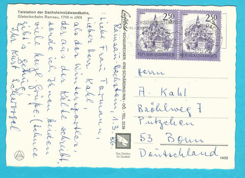 AK Talstation der Dachsteinsüdwandbahn. Gletscherbahn Ramsau. Gelaufen. Großformat. Verlag: Luftbild Scheurecker. Nummeriert: C 1422. Zustand: gut.