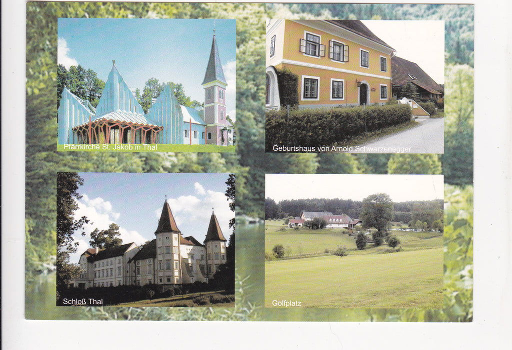 AK Thal 167. Kirche. Geburtshaus von Arnold Schwarzenegger. Schloß Thal. Golfplatz. Ungelaufen. Großformat. Zustand: gut.