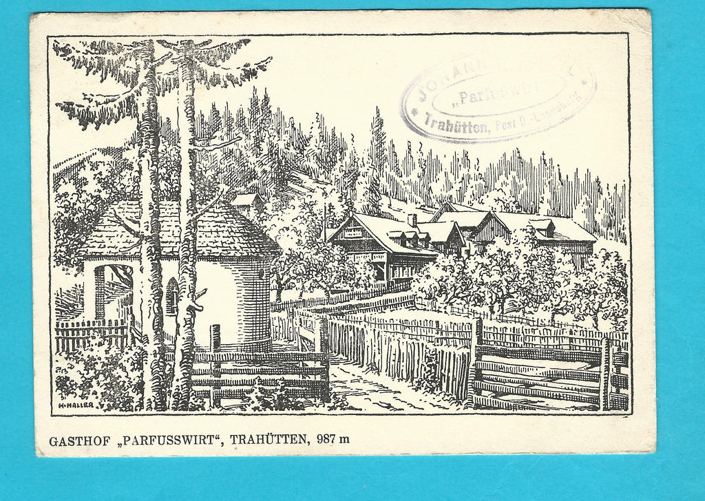 AK Trahütten. Gasthof Parfusswirt. Gelaufen. Großformat. Verlag: Edelsbrunner. Nummeriert: 13/47. Zustand: Ecken angeknickt.