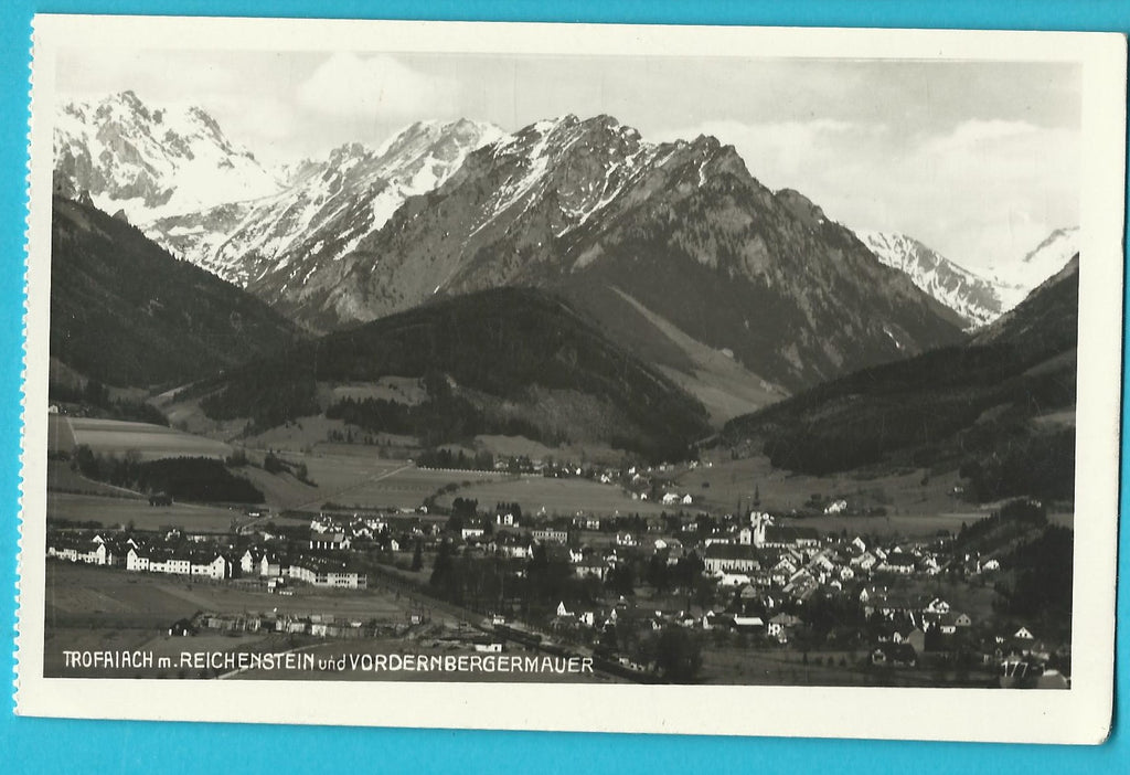 AK Trofaiach m. Reichenstein und Vordernbergermauer. (1929) Ungelaufen. Kleinformat. Verlag: Auleithner. Nummeriert: 177/1. Zustand: gut.
