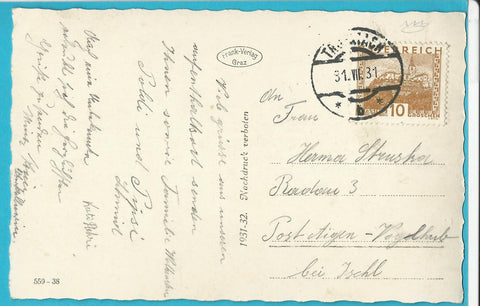 AK Trofaiach mit Vordernbergermauer. (1931-32) Gelaufen. Kleinformat. Verlag: Frank. Nummeriert: 559-38. Zustand: gut.