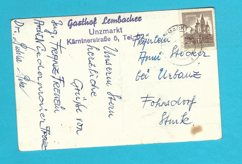 AK Unzmarkt. Gasthof Lembacher. Kärntnerstraße 5. Gelaufen. Kleinformat. Zustand: Knicke.