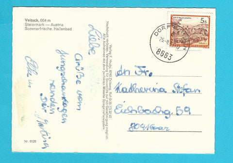 AK Veitsch. Gelaufen. Großformat. Verlag: Hruby. Nummeriert: 6128. Zustand: Ecken und am Rand geknickt.