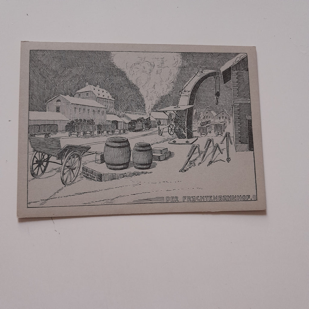 AK Der Frachtenbahnhof. Serie Mürzzuschlag von Schulrat Dorfmeister. Ungelaufen. Großformat. Verlag: Müllner. Zustand: gut.