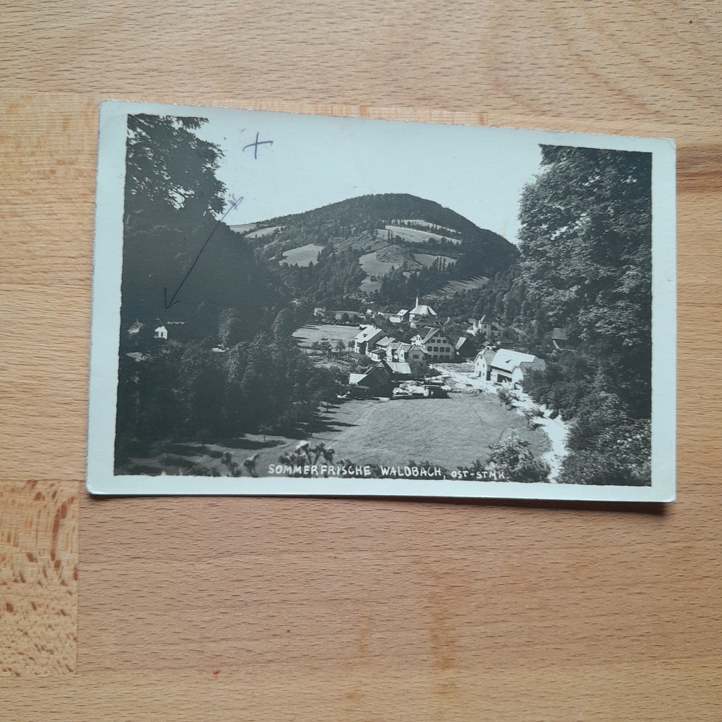 AK Waldbach. Gelaufen. Kleinformat. Zustand: gut, Bleistiftmarkierungen.