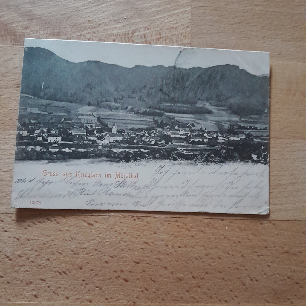 AK Gruss aus Krieglach im Mürzthal. Gelaufen. Kleinformat. Nummeriert: 113878. Zustand: gut, rechtes unteres Eck angeknickt.