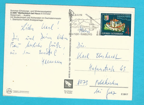 AK Weissenbach bei Haus. Gelaufen. Großformat. Verlag: Luftbild Scheurecker. Nummeriert: C 2617. Zustand: linkes oberes Eck mehrfach geknickt.