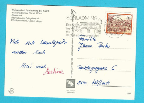 AK Weltcupstadt Schladming. Gelaufen. Großformat. Verlag: Luftbild Scheurecker. Nummeriert: 1526 Zustand: gut, linkes oberes Eck angeknickt.
