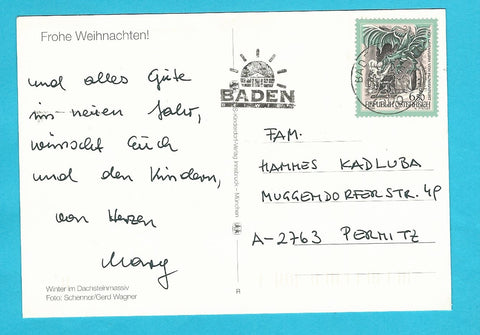 AK Winter im Dachsteinmassiv. Gelaufen. Großformat. Verlag: SOS Kinderdorf. Zustand: gut, linkes unteres Eck geknickt.