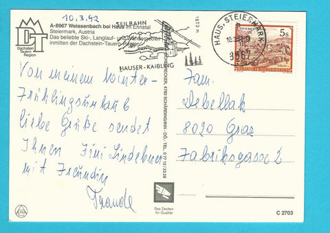 AK Winterferien in Weissenbach bei Haus. Gelaufen. Großformat. Verlag: Luftbild Scheurecker. Nummeriert: C 2703. Zustand: gut.