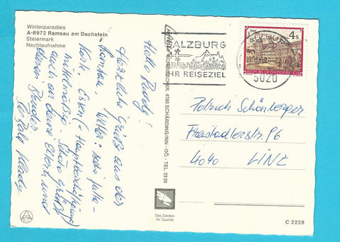 AK Wintergrüße aus Ramsau am Dachstein. Gelaufen. Großformat. Verlag: Luftbild Scheurecker. Nummeriert: C 2228. Zustand: Knicke am unteren Rand.