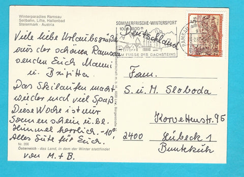 AK Winterparadies Ramsau. Gelaufen. Großformat. Verlag: Kunasz. Nummeriert: 356. Zustand: gut.