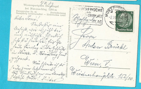 AK Wintersportplatz Bärenkogel bei Mürzzuschlag. Gelaufen. Kleinformat. Verlag: Böhm. Zustand: etwas berieben, rechtes unteres Eck geknickt.