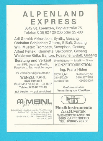 Autogrammkarte Alpenlandexpress. St. Lorenzen, Pogierstraße 75. Großformat. Zustand: gut.