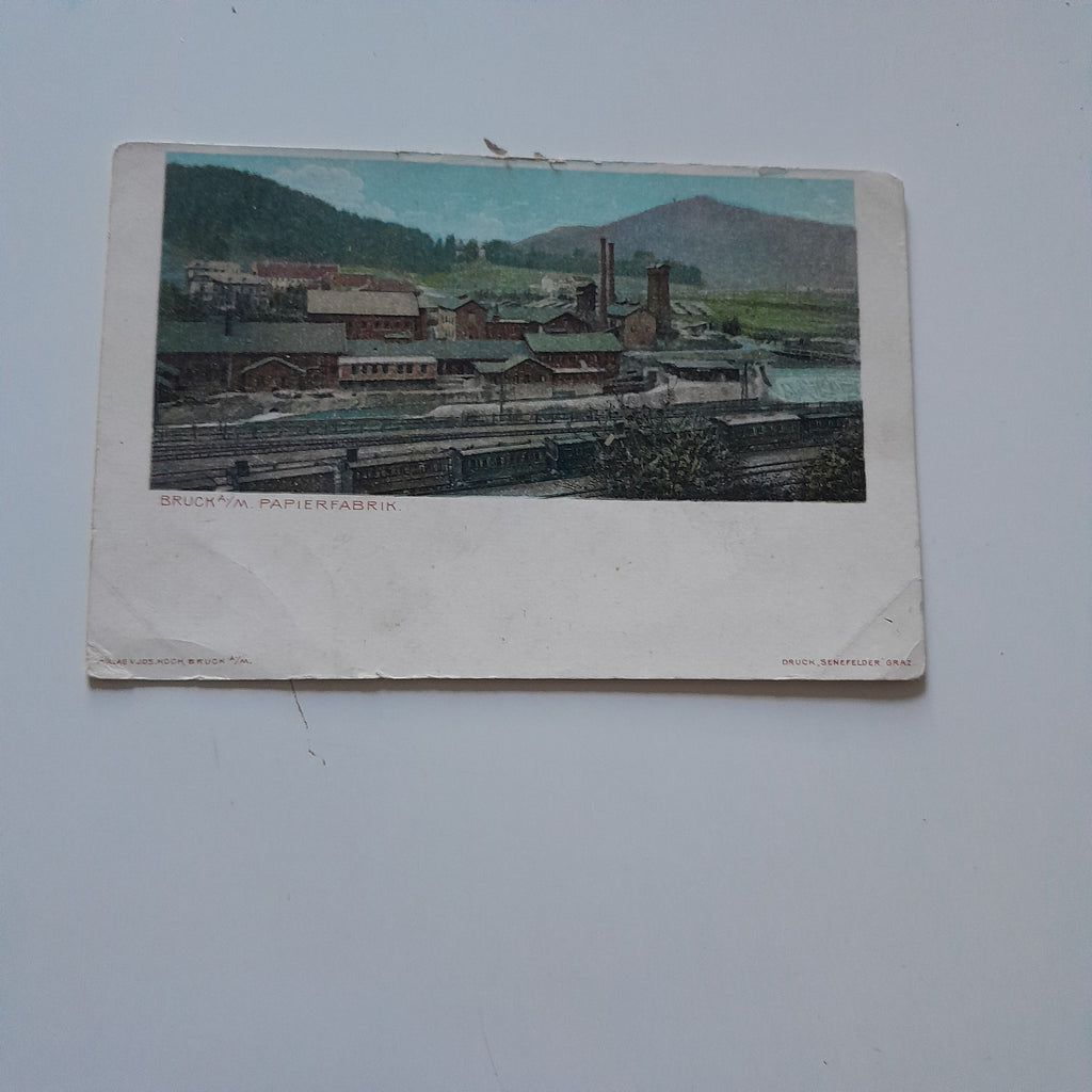 AK Bruck an der Mur. Papierfabrik. Ungelaufen. Kleinformat. Verlag: Koch. Druck: Senefelder. Zustand: stärker bestoßen.