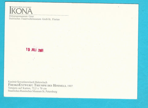 Karte Diözesanmuseum Graz. Russische Bilder der Ewigkeit Ikona. Kasimir Sewerinowitsch Malewitsch FreskoEntwurf: Triumpf des Himmels. Großformat. Zustand: Knick am unteren Rand.