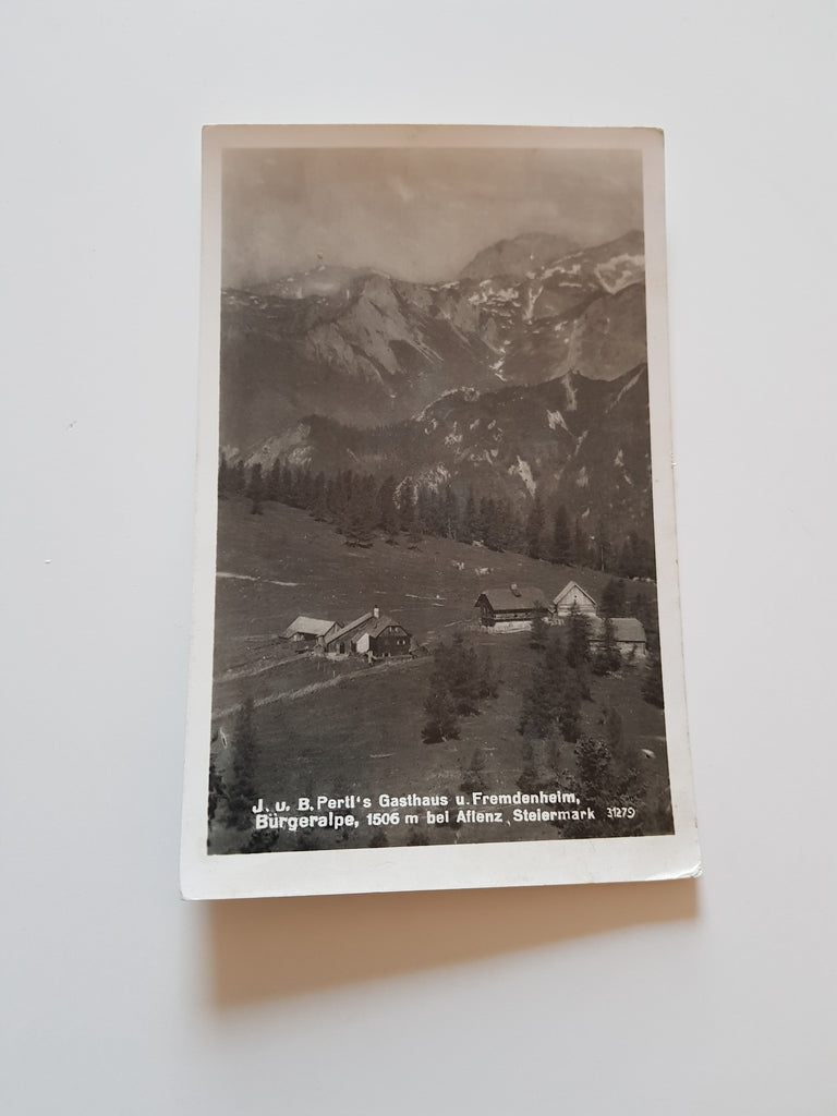 AK Aflenz. J. u. B. Pertl's Gasthaus u. Fremdenheim. Bürgeralpe. (1941) Gelaufen. Kleinformat. Verlag: Ledermann. Nummeriert: 31279. Zustand: gut, leicht bestoßen.