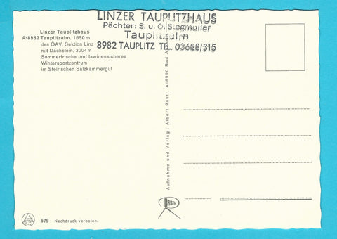 AK Tauplitzalm. Linzer Tauplitzhaus. Ungelaufen. Großformat. Verlag: Rastl. Nummeriert: 679. Zustand: Ecken mit Steckalbumdruckspuren.