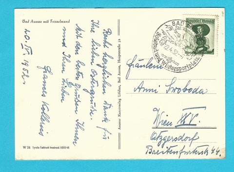 AK Bad Aussee mit Trisselwand. Gelaufen. Großformat. Verlag: Lökher. Nummeriert: W 24. Zustand: stärker bestoßen.