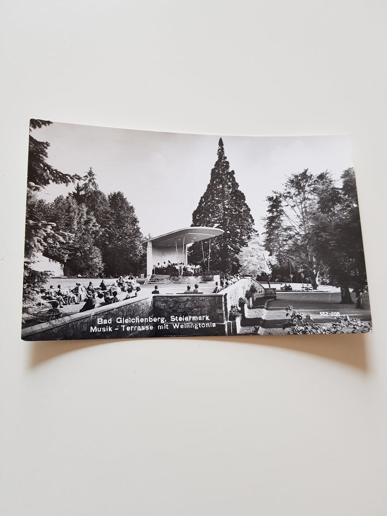 AK Bad Gleichenberg. Musik Terrasse mit Wellingtonia. Ungelaufen. Kleinformat. Verlag: Frank. Nummeriert: 562-208. Zustand: gut.