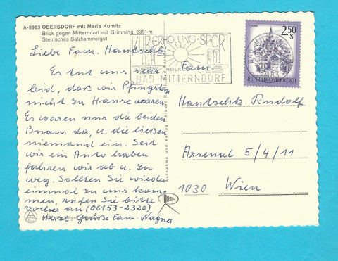 AK Obersdorf mit Maria Kumitz. Gelaufen. Großformat. Verlag: Rastl. Zustand: rechtes oberes Eck geknickt.