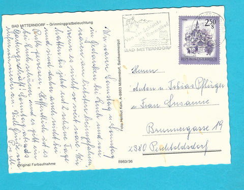 AK Bad Mitterndorf - Grimminggratbeleuchtung. Gelaufen. Großformat. Verlag: Kain. Nummeriert: 8983/36. Zustand: Knicke am oberen Rand.