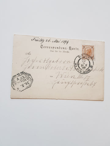 AK Gruss aus Bruck an der Mur. Gelaufen 1899. Kleinformat. Verlag: Schmidt. Nummeriert: 1212 b. Zustand: gut.