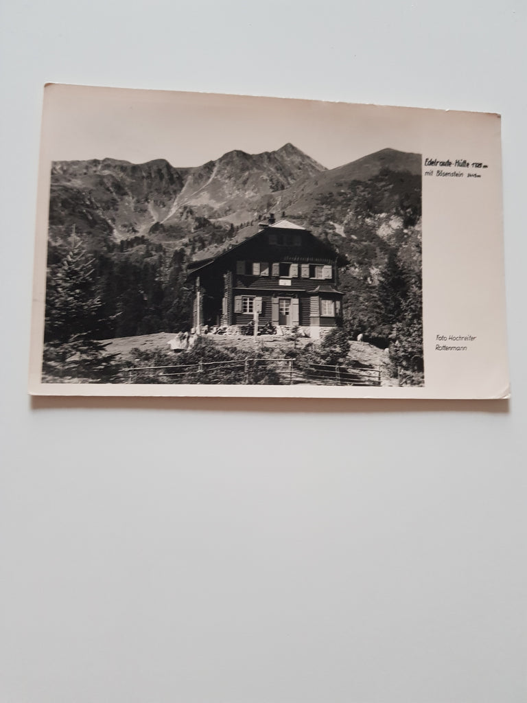 AK Edelraute-Hütte mit Bösenstein. Gelaufen. Kleinformat. Verlag: Hochreiter. Zustand: gut, rechtes unteres Eck geknickt.