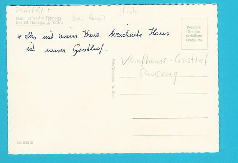 AK Rinnegg bei St. Radegund. Ungelaufen. Großformat. Verlag. Weghofer. Nummeriert: 806110. Zustand: untere Ecken angeknickt, Kreuzerl in rechter unterer Hälfte.