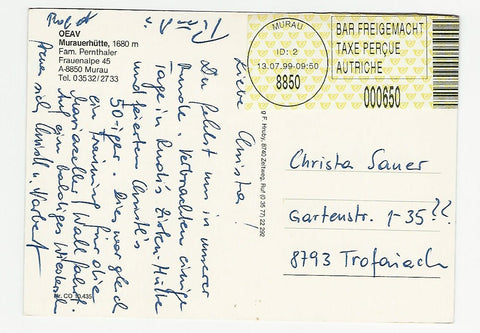 AK OEAV Murauerhütte. Fam. Pernthaler. Frauenalpe 45. Gelaufen. Großformat. Verlag: Hruby. Nummeriert: 10435. Zustand: gut.
