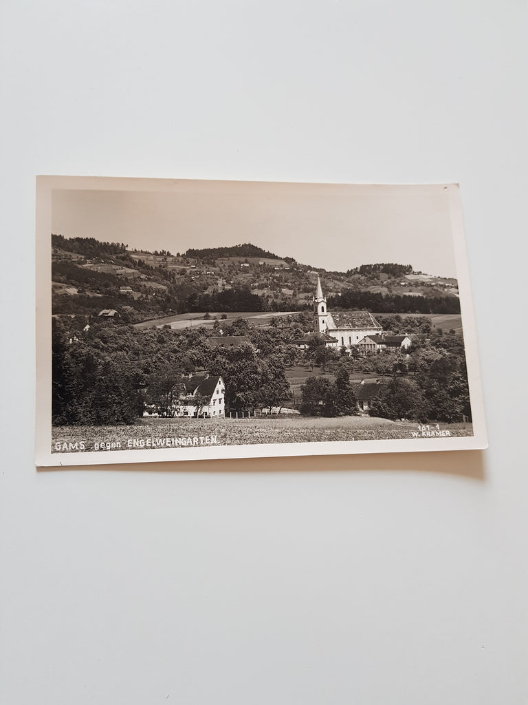 AK Gams gegen Engelweingarten. Gelaufen. Kleinformat. Verlag: Kramer. Nummeriert: 161-1. Zustand: gut, Stecknadeldurchstich im rechten oberen Eck.
