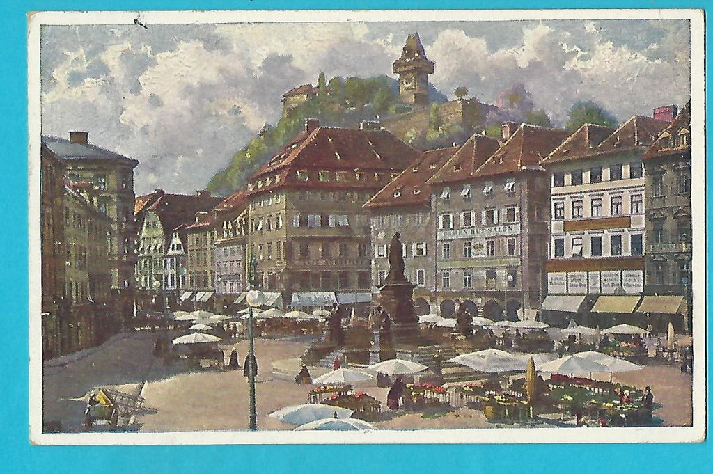 AK Graz. Hauptplatz. Gelaufen. Kleinformat. Verlag: Hausner. Nummeriert: 7012/10. Zustand: rechtes oberes Eck geknickt.