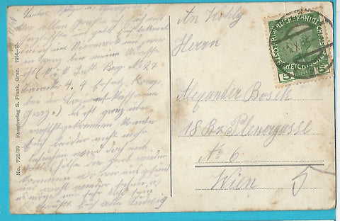 AK Graz. Stadtparkbrunnen. (1914-15) Gelaufen. Kleinformat. Verlag: Frank. Nummeriert: 725/39. Zustand: gut, linkes oberes Eck geknickt.