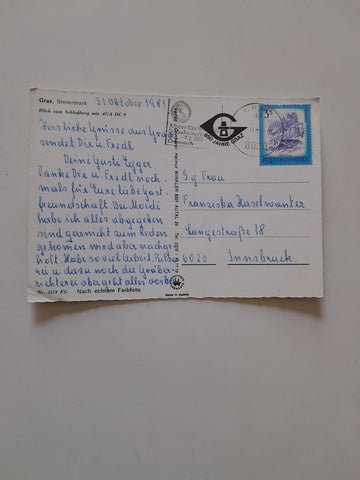 AK Graz. Blick zum Schloßberg mit AUA DC 9.