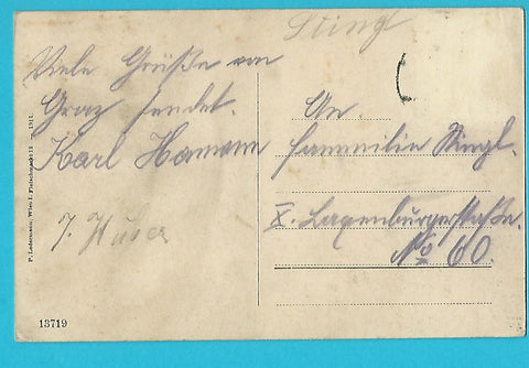 AK Graz mit den 3 Brücken. (1911) Gelaufen, aber Briefmarke wurde entfernt. Kleinformat. Verlag: Ledermann. Nummeriert: 13719. Zustand: leicht bestoßen.
