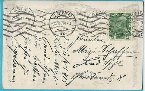 AK Graz. Hauptplatz mit Schlossberg. Gelaufen. Kleinformat. Verlag: B.K.W.I. Nummeriert: 936/15. Zustand: Ecken und am Rand etwas angestoßen.